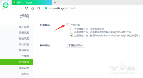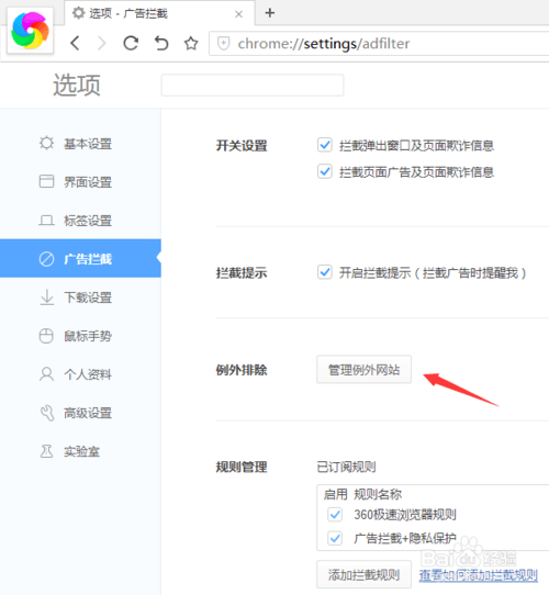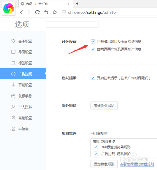 360极速浏览器广告拦截设置