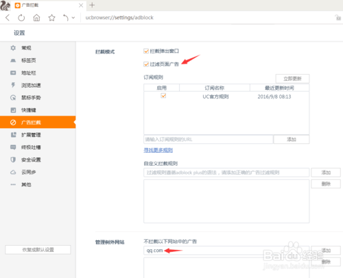UC浏览器广告拦截设置