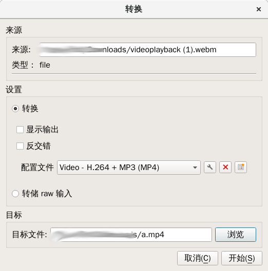 在目标文件那里选择生成的视频文件保存在哪里。点击开始即可自动开始转换,等待进度条走完,即可。